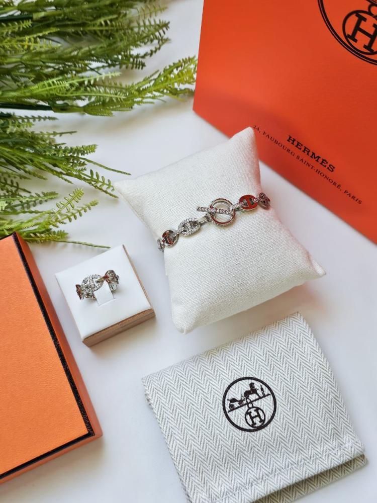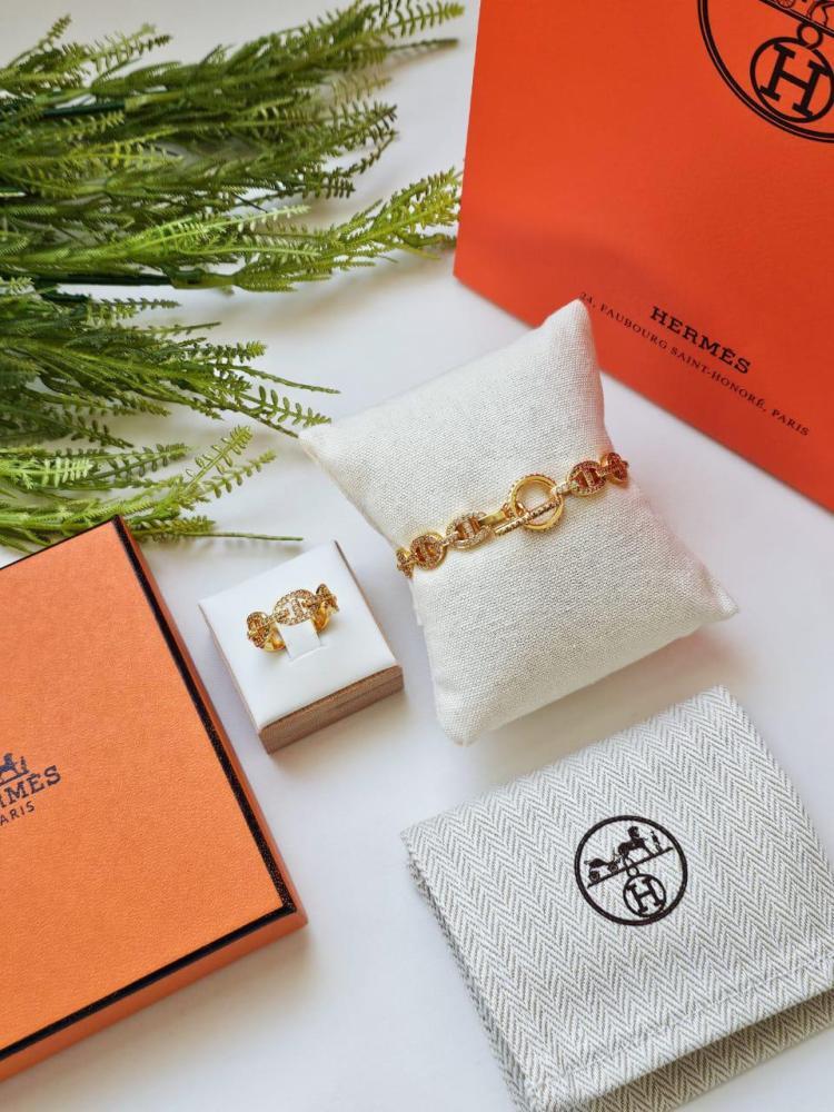 "طقم هيرمز - إسوارة وخاتم - هو عنوان للأناقة والفخامة التي لا تُنسى، ليجعل كل لحظة أكثر تميزًا."