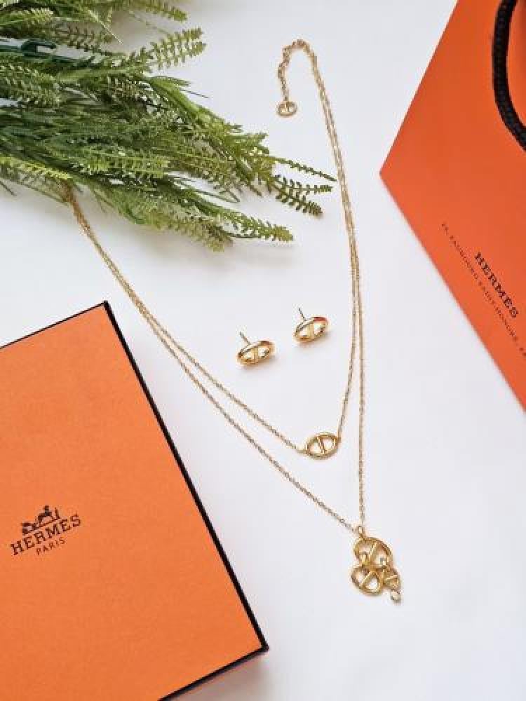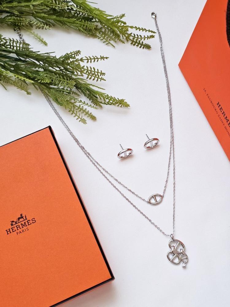 "طقم هيرمز - سلسال وحلق - هو عنوان للفخامة والبساطة الراقية التي تُبرز ذوقك المميز وتُكمل أناقتك."