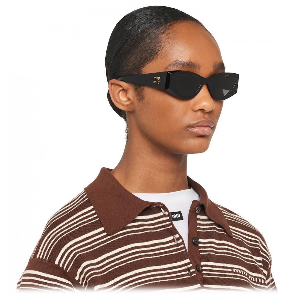 - الشعار: شعار Miu Miu الأيقوني محفور بدقة على أذرع النظارة.